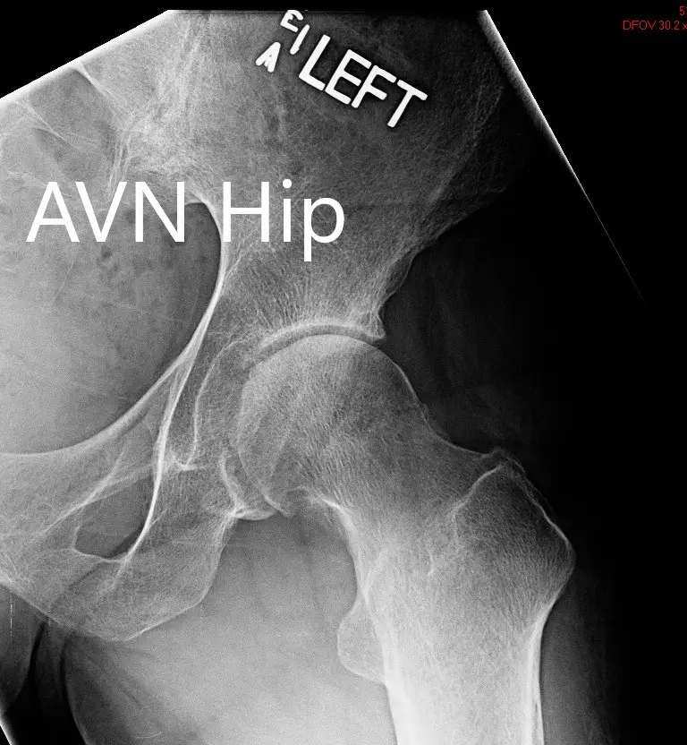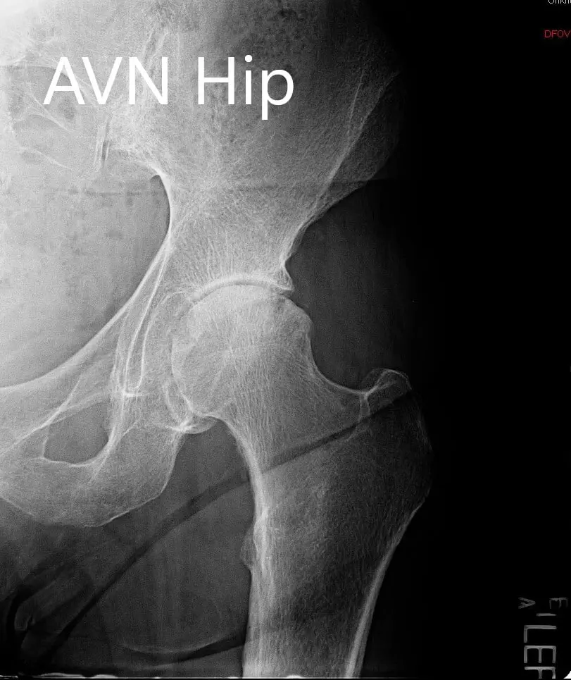 He was working as a security officer at an airport but was currently on leave secondary to hip pain. He denied any history of fall or trauma or long term steroid intake. He was a nonsmoker and consumed alcohol socially.