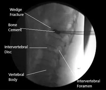 Intraoperative fluoroscopic image of kyphoplasty.