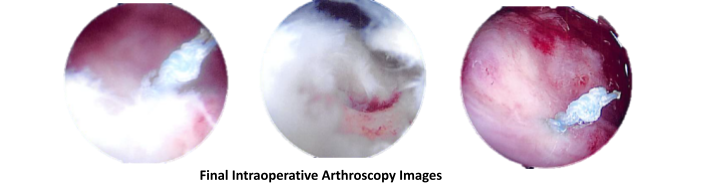 Final pictures were taken and the shoulder was drained. The portals were closed using nylon. Dressing was done using Adaptic, 4×4, ABD, and tape. The patient was moved to the post-operative holding area. The patient tolerated the procedure well.