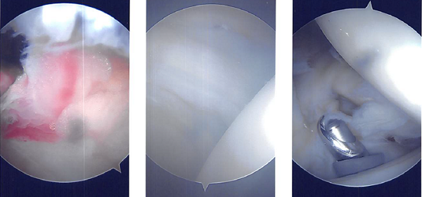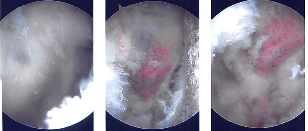 Acromioplasty was decided upon. After cleaning with a heat wand and a bur, acromioplasty was carried out. The AC joint was checked after a comprehensive acromioplasty and found to be degenerating. Excision of the distal clavicle was planned. The distal clavicle was removed using a wand and then a bur.
