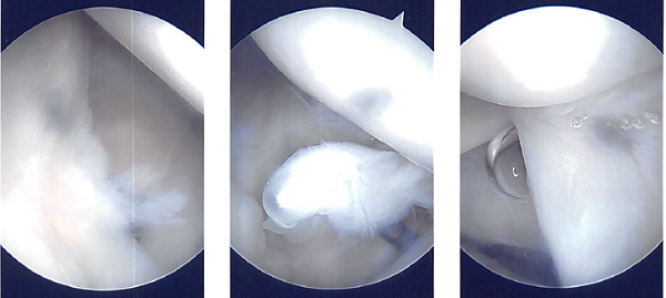 Using a shaver, a thorough bursectomy was performed. It was created a lateral portal. The acromion was frayed and had a type 2 (curved configuration) configuration.