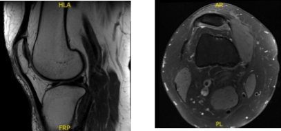 X-ray and MRI were presented in the office. Found vertical tear at the free edge margin of the posterior horn medial meniscus, with mild undersurface/free edge fraying of the body segment. Mild medial femorotibial compartment chondral loss. Mild patellofemoral compartment chondral wear, preferentially over the medial aspect of the compartment.
