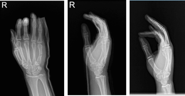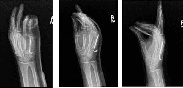 The pins were undermined under the skin and closure was done using nylon. A dressing was done using 4×4 and Webril and an ulnar gutter splint was applied with ease. The patient was extubated and moved to recovery in a stable condition.