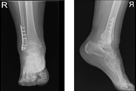 After a month, suggested to the patient to take X-ray to see the condition of the operated ankle. Result showed old surgically treated healed distal fibular fracture. Patient not undergone Physical Therapy. With the consistent follow up checkup and RICE procedure, patients get well.