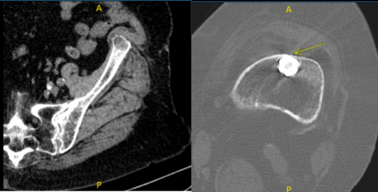 Patient returned to the office for post operative follow up. She presented the result of her CT scan, 4 weeks after the operation and there are mild osteoarthritic degenerative changes.