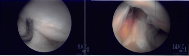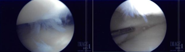 The knee was copiously irrigated with normal saline. Final images were saved. The scope was removed and the incision was closed using #4-0 nylon.