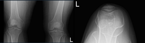 After a week of postoperative surgery, he had been using a knee brace (ROM) and denied fever and chills. A month after, the incisions were healed well, without evidence of drainage, erythema or warmth. He was advised to do physical therapy and take some anti-inflammatory drugs until he had a full relief.