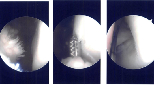 Three of them were put in the body posterior and medial to the popliteus muscle and one was put lateral to the popliteus muscle. The reduction and repair were found to be adequate. The tourniquet was released and found to have a good blood clot inside.