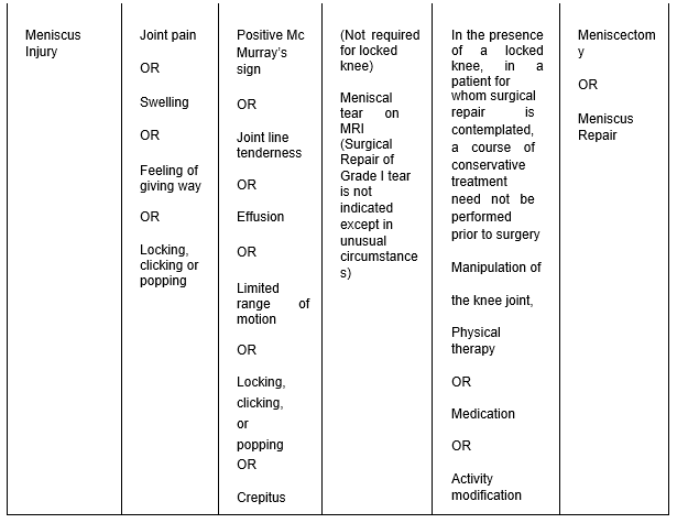 The New York State workers compensation board has developed these guidelines to help physicians, podiatrists, and other healthcare professionals provide appropriate treatment for Meniscus Injury.
