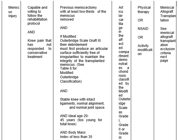 - Meniscal Allograft TransplantationMeniscal Allograft Transplantation is recommended in select patients, as clinically indicated.