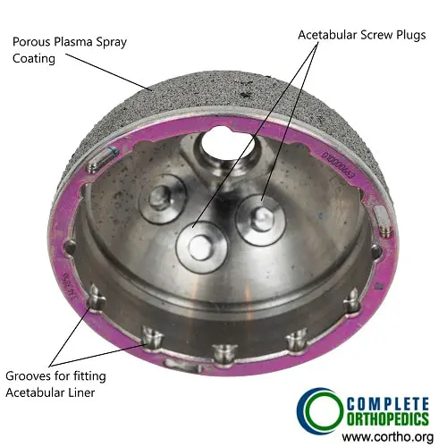 Acetabular Shell with screw holes and porous outer surface for bone ingrowth.