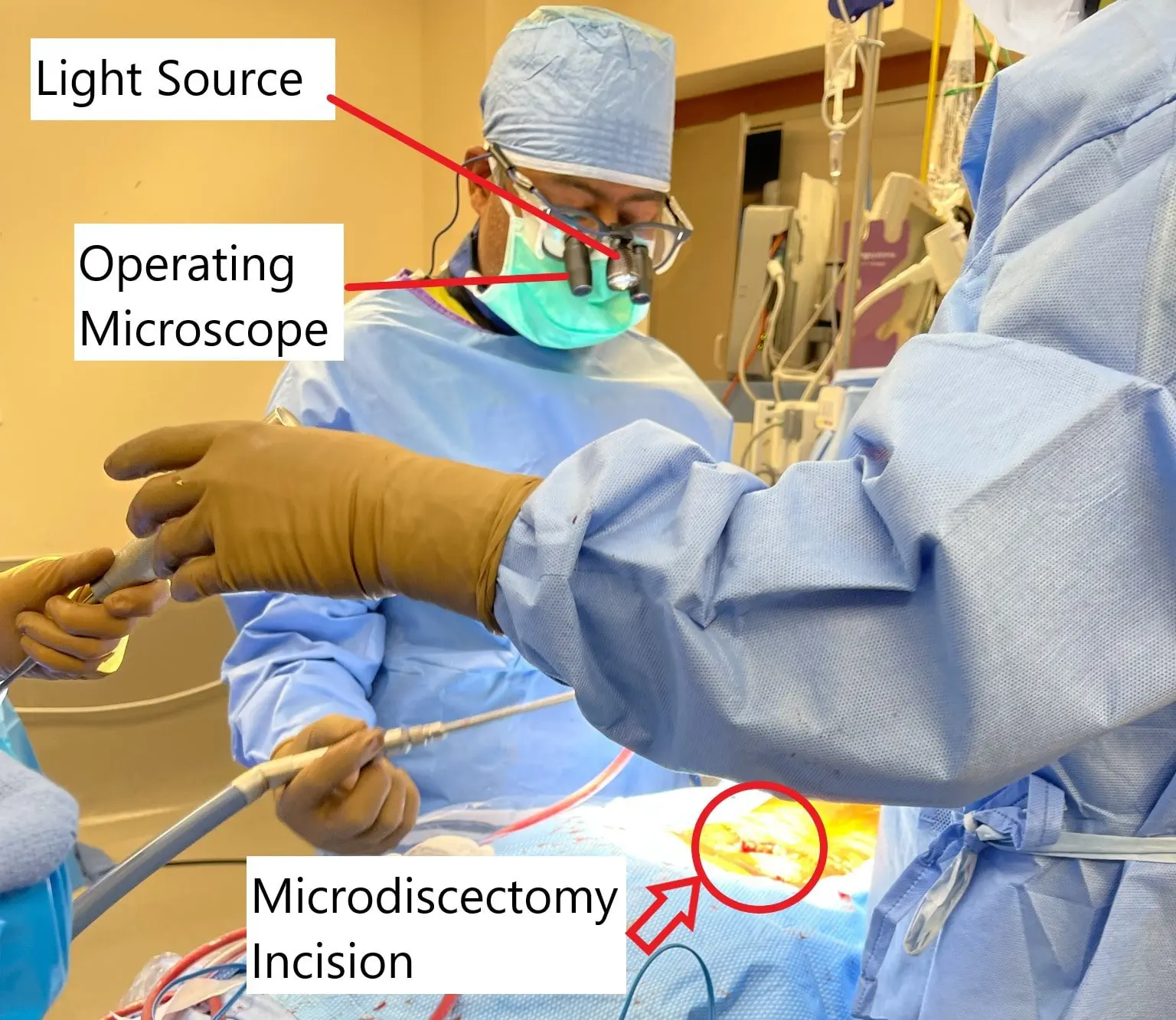 Intraoperative image showing microdiscectomy surgery.