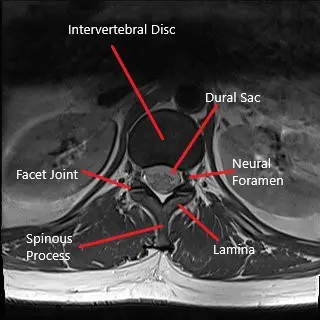 Axial section of lumbar spine MRI.