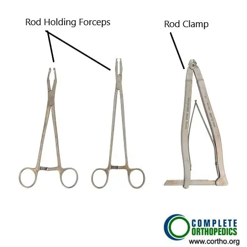 The images above show various types of instruments used in posterior spinal fusion which may be used for revision surgery. The rods are used to stabilize the spinal segments and are tightened over the pedicle screws. The rods may be contoured to a required shape during the surgery to achieve maximum stability using the rod benders.