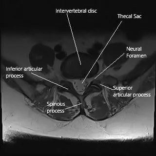 Axial section of the lumbar spine at L5 level.