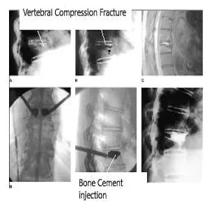 Appropriately chosen patients are worked up by the use of x-ray and MRI. Occasionally, CT scan may be needed. Patients who need vertebroplasty or kyphoplasty are taken to the operating room. The procedure is usually done under general anesthesia but can also be performed under local anesthesia.